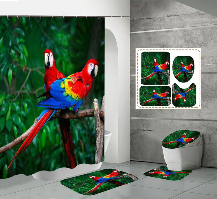 IMPRIMIDO DIGITALMENTE: CORTINA DE DUCHA IMPERMEABLE DE POLIÉSTER CON AVES COLORIDAS PARA BAÑO