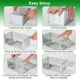 FÁCIL DE USAR: SOLO COLOCA EL CEBO, CONFIGURA EL DISPARADOR, UBICA LA TRAMPA Y REVISAR REGULARMENTE PARA LIBERAR O DESECHAR LOS ROEDORES.