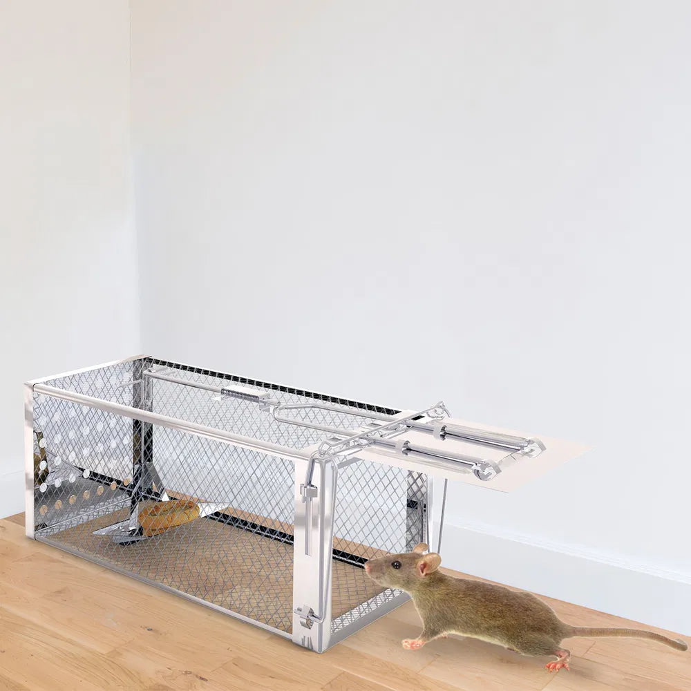 CONSTRUCCIÓN RESISTENTE: ACERO INOXIDABLE SOLDADO PARA RESISTIR LA CORROSIÓN Y GARANTIZAR DURABILIDAD EN EL CONTROL DE ROEDORES.
