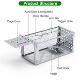 PEDAL DE GRAVEDAD DE ALTA SENSIBILIDAD: DISEÑADO CON MECANISMO DE PUERTA DE UNA SOLA VÍA, LA PUERTA SE BLOQUEA AUTOMÁTICAMENTE CUANDO EL ROEDOR PISE LIGERAMENTE EL PEDAL, IMPIDIENDO QUE ESCAPE Y ASEGURANDO UNA CAPTURA EFICAZ.