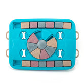 CÓMO USAR: TIRE DE TODOS LOS MANGOS, DESLICE EL PANEL Y COLOQUE LOS SNACKS. SE RECOMIENDA NO LLENAR TODOS LOS CONTENEDORES DE COMIDA. TODOS LOS MANGOS SE BLOQUEAN PARA INICIAR EL VIAJE DEL PERRO EN LA BÚSQUEDA DE COMIDA.